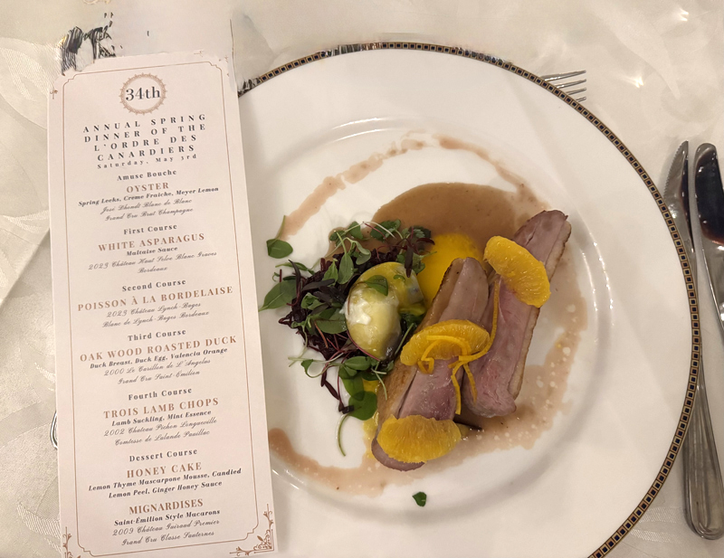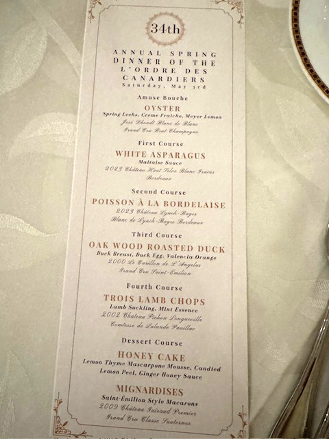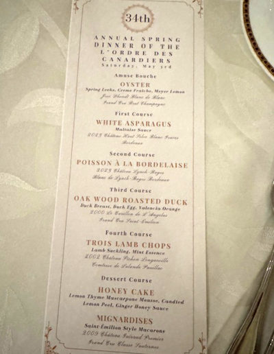 Menu for the 34th Annual Spring Dinner of the L’Ordre des Canardiers